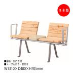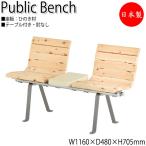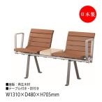 屋外用ベンチ 公共ベンチ ガーデンチェア 長イス アウトドアベンチ 2人掛 幅131cm テーブル付 肘付き ひのき 天然木 ML-0117