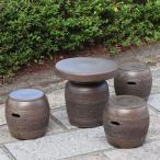 信楽焼 ガーデンテーブル 陶器テーブルセット 庭園テーブル イス テーブル 陶器 ガーデンセット 庭 テラス ベランダ 屋外用 4点セット 16号はけ目 te-0015