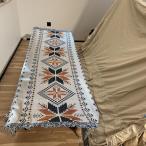 オルテガ柄 ラグマット ブランケット ホワイト/白 90cm×180cm ネイティブ柄 キリム アウトドア キャンプ コット ベッド チェア カバー
