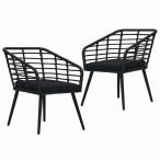 vidaXL ガーデンチェア 2点 クッション付き ポリラタン製 ブラック 家具 アウトドア家具 屋外椅子 アウトドアベンチチェア
