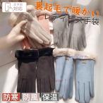 手袋 レディース 秋冬 おしゃれ かわいい 暖かい スマホ タブレット 手ぶくろ 防寒 防風 保温 裏起毛 寒さ対策 黒 ファー ボア 手首 スマホ手袋 人差し指 5本指