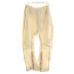 未使用品 アキコアオキ AKIKOAOKI animalistic trousers ユニークシルエットパンツ ストライプ柄 カットオフ 36 ベージュ