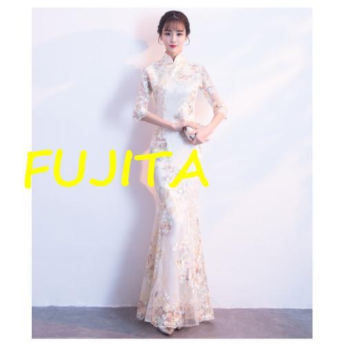 【期間限定10%OFF】チャイナドレス ロング ワンピース マキシ アオザイ 花柄 七分袖 チャイナ服 ロングチャイナドレス