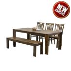 ダイニングテーブルセット ダイニングセット テーブル チェア ベンチ テーブル幅180 アジアン アカシア 無垢材 6人掛け 5点セット ハイバック 北欧風 モダン
