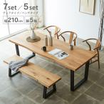 ダイニングテーブルセット 5点 7点 セット 幅210 天然木 無垢材継ぎ継ぎ 一枚板風 テーブル 6人 オーク ウォールナット ダイニングテーブル カフェ KAGUCOCO