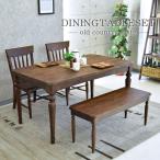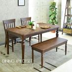 ダイニングテーブルセット 4点セット 4人掛け 幅140 カントリー ヴィンテージテイスト ベンチ 総無垢仕上げ コンパクト ダイニングテーブル ダイニングチェアー おしゃれ 商品情報配...