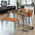爆買 ダイニングテーブルセット 4人掛け ベンチセット 幅120 4点セット おしゃれ ヴィンテージ風 チェア2脚 ダイニング アイアン PVC 合成皮革 布