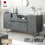 ジャパンディスタイル 日本x北欧 キャビネット サイドボード 国産 日本製 天然木製 アカシア材 プラス 麻柄クロス貼り