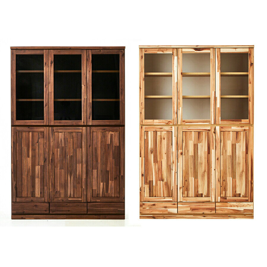 先着で10%offクーポン フリーボード 食器棚 キッチンボード 書棚 120 ガラス戸 国産 日本製 完成品 大川家具 木製 アカシア 収納 木目調 開き戸 扉 キッチン リビング 書斎 耐震ラッチ 耐震ダボ 飛散防止フィルム加工