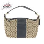 美品 COACH コーチ シグネチャー ベージュ ブラウン ゴールド金具 キャンバス/レザー ハンドバッグ アクセサリーポーチ レディース 600505