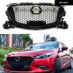 並行輸入品 フロント グリル レーシング グリル マツダ 3 アクセラ 2017-2018 ハニカム スタイル グロスブラック アッパー バンパー インテークフード ラジ