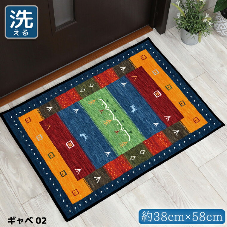 玄関マット 室内 おしゃれ 洗える 約38×58cm キッチンマット アクセントマット イラスト マット 敷物 転写プリント エスニック TEN017