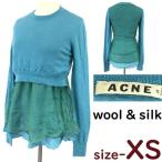 アクネ/ACNE★絹/SILK/シルクオーガンジー/ドッキングニットカットソー/セーター/薄手【レディースXS/水色】Tops/sweater/dress◆pBH615
