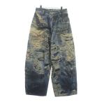 アクネ ストゥディオズ 総柄転写プリント スーパーバギーフィット ボタンフライ デニムパンツ ジーンズ FN-MN-TROU001097