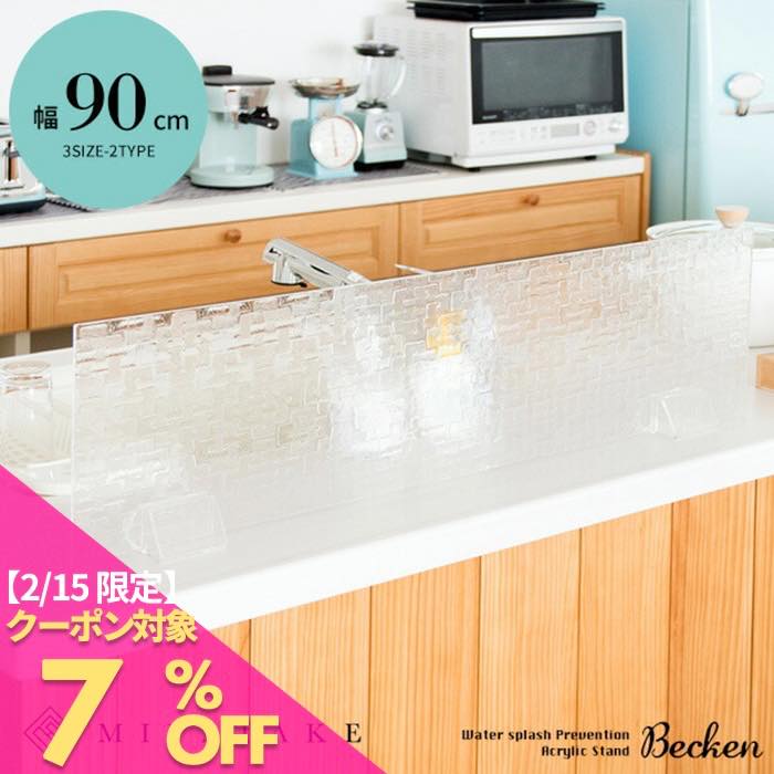 アクリル水はね防止スタンド 幅90×奥行7.5×高さ24.5cm アクリル樹脂 完成品 クリア ホワイト 0nc-mhb90シンクからの水はねを防ぐアクリルスタンド『Becken(ベッケン)』。 L字設置も可能で...