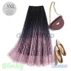 スカート レース 透け感 アコーディオンプリーツ グラデーション ママスタイル 女子旅 きれいめ かわいい 可愛い 定番 大人可愛い 母親 ドライブ