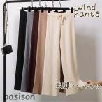 ワイドパンツ リブ ニット ボトムス レディース ウエストゴム 着痩せ 体型カバー 秋冬用 ゆったり 通学 通勤 OL 秋冬 暖かい カジュアル