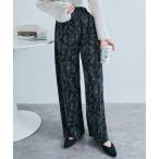 ワイドパンツ プリーツパンツ 秋冬 柄 レディース バギーパンツ ストレート イージーパンツ ワンマイル リラックス ウエストゴム 裾カット