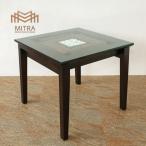 ウォーターヒヤシンス ダイニングテーブル ガラス天板 W80cm アジアン家具 引出し付 ストーン彫刻 おしゃれ 組立設置付[MITRA ミトラ] 安心1年保証