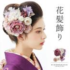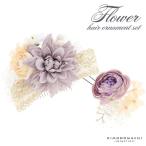 成人式 髪飾り 花 3点セット「オフ ホワイト パープル MI-47」コーム Uピン ドライフラワー 振袖 髪飾り 卒業式 結婚式 着物 袴 (メール便不可)<H>ss2512wkk10