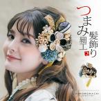 髪飾り 成人式 つまみ髪飾り Uピン 16点セット フラワーポット「シャルロット グレー Arenca No.8366」振袖用髪飾り お花髪飾り 日本製(メール便不可)