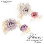 髪飾り 成人式 花髪飾り フラワーコーム Uピン 3点セット 「アネモネ グレー No.1339」 振袖用髪飾り お花髪飾り (メール便不可)<H>