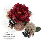 髪飾り 成人式 花髪飾り フラワーコーム Uピン 4点セット 「ラナンキュラスブーケ ワイン No.1335」 振袖用髪飾り お花髪飾り (メール便不可)<H>