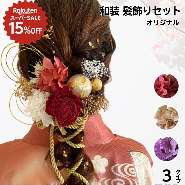 【30%OFF☆4,990円⇒3,493円】★48H限定TS☆12/5~7 9:59 髪飾り 浴衣 花 成人式 9点 セット 振袖 卒業式 袴 ドライフラワー かすみ草 花 紫陽花 アースカラー 白 ピンク ベージュ 赤 紫 緑 和装小物 送料無料