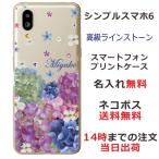 シンプルスマホ6 ケース A201SH カバー ラインストーン かわいい フラワー 花柄 らふら 名入れ 押し花風 春花