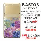 BASIO3 ケース KYV43 ベイシオ3 カバー ラインストーン かわいい フラワー 花柄 らふら 名入れ 押し花風 春花