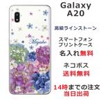 Galaxy A20 ケース SC-02M SCV46 ギャラクシーA20 カバー ラインストーン かわいい フラワー 花柄 らふら 名入れ 押し花風 春花