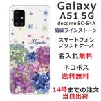 Galaxy A51 ケース SC-54A SCG07 ギャラクシーA51 カバー ラインストーン かわいい フラワー 花柄 らふら 名入れ 押し花風 春花