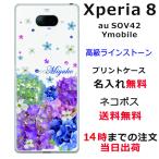 Xperia 8 ケース SOV42 エクスペリア8 カバー ラインストーン かわいい フラワー 花柄 らふら 名入れ 押し花風 春花
