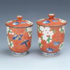 熊谷聡商店 蓋付組湯呑 UIS170「朱濃鴛鴦(しゅだみえんおう)2個セット」京焼くまがい メーカー取寄品(代引不可)