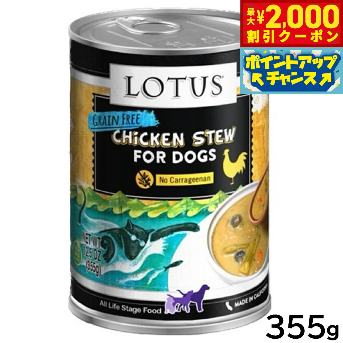 【最大2000円OFFクーポン!&店内ポイント最大52倍!本日限定!】ロータス ドッグフード グレインフリー 無水調理ウェットフード チキン&アスパラガス シチュー 355g 無添加 缶詰