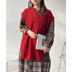 ベスト ジレ 裾まるケーブル編みチュニックベスト レディース