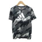 アディダス adidas Tシャツ カットソー 160 マルチカラー 黒 ブラック 迷彩柄 カモフラ柄 半袖 ロゴプリント ■ECA003 男の子 キッズ