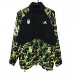 【美品】アディダス×A BATHING APE ジップパーカー グリーン×黒 一部カモフラ 迷彩 ジャケット メンズ L ゴルフウェア adidas