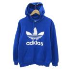 アディダスオリジナルス adidas originals パーカー プルオーバー L 青 ブルー ロゴプリント 裏起毛 ミドル丈 /YS42 ■GY58 メンズ