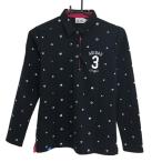 アディダス adidas 長袖 ポロシャツ L 黒 ブラック プリーツ装飾 /AB ■OS レディース