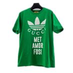 未使用品▼GUCCI adidas グッチ アディダス 717422 コットン100% プリント クルーネック ショートスリーブ 半袖Tシャツ グリーン S イタリア製 正規品 メンズ【中古】