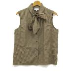 アニエスベー ブラウス シャツ トップス ノースリーブ ボウタイリボン レディース 42サイズ 茶×ベージュ agnes b.
