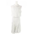 アニエスベー agnes b. セットアップ 2点セット シャツ ノースリーブ ひざ丈スカート チェック 総柄 38 M 白 ホワイト /AO14 ■GY43