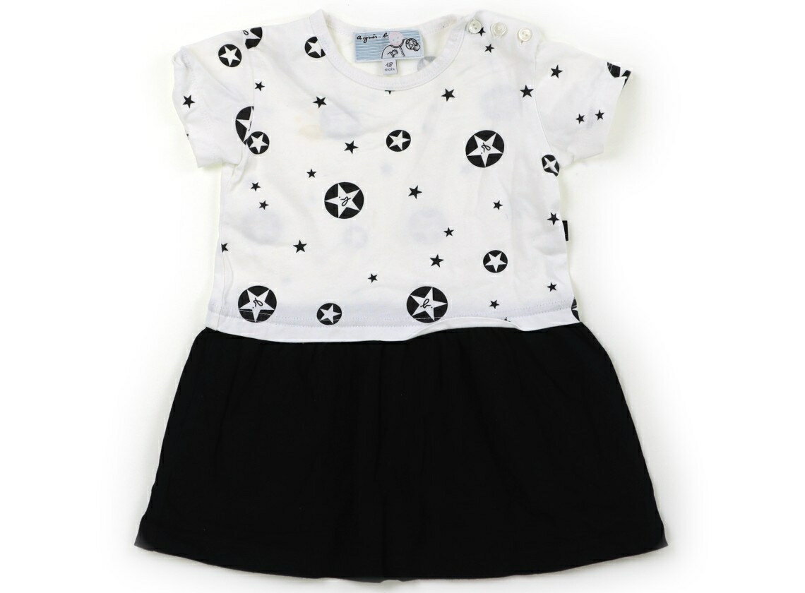 アニエスベー agnes.b ワンピース 80 女の子 ホワイト・ブラック・ロゴ 子供服 ベビー服 キッズ アウトレット ユーズド 【中古】キッズ・ベビー・マタニティ