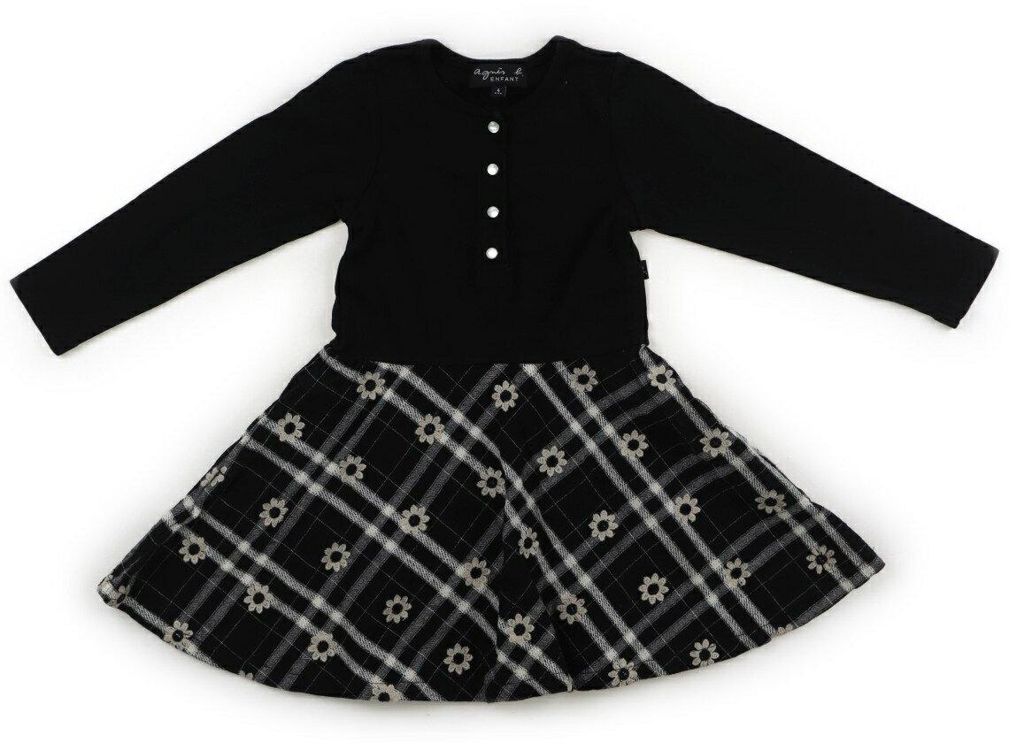 アニエスベー agnes.b ワンピース 100 女の子 黒、チェック、花 子供服 ベビー服 キッズ アウトレット ユーズド 【中古】キッズ・ベビー・マタニティ