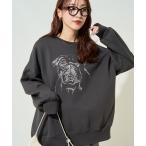 トレーナー スウェット 限定展開 ブルドッグ ラメ 刺繍 ビッグ 裏起毛 スウェット レディース