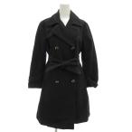 アニヤハインドマーチ ANYA HINDMARCH トレンチコート ダブルブレスト ロング リボンベルト パイピングレザー S 黒 ブラック /GV