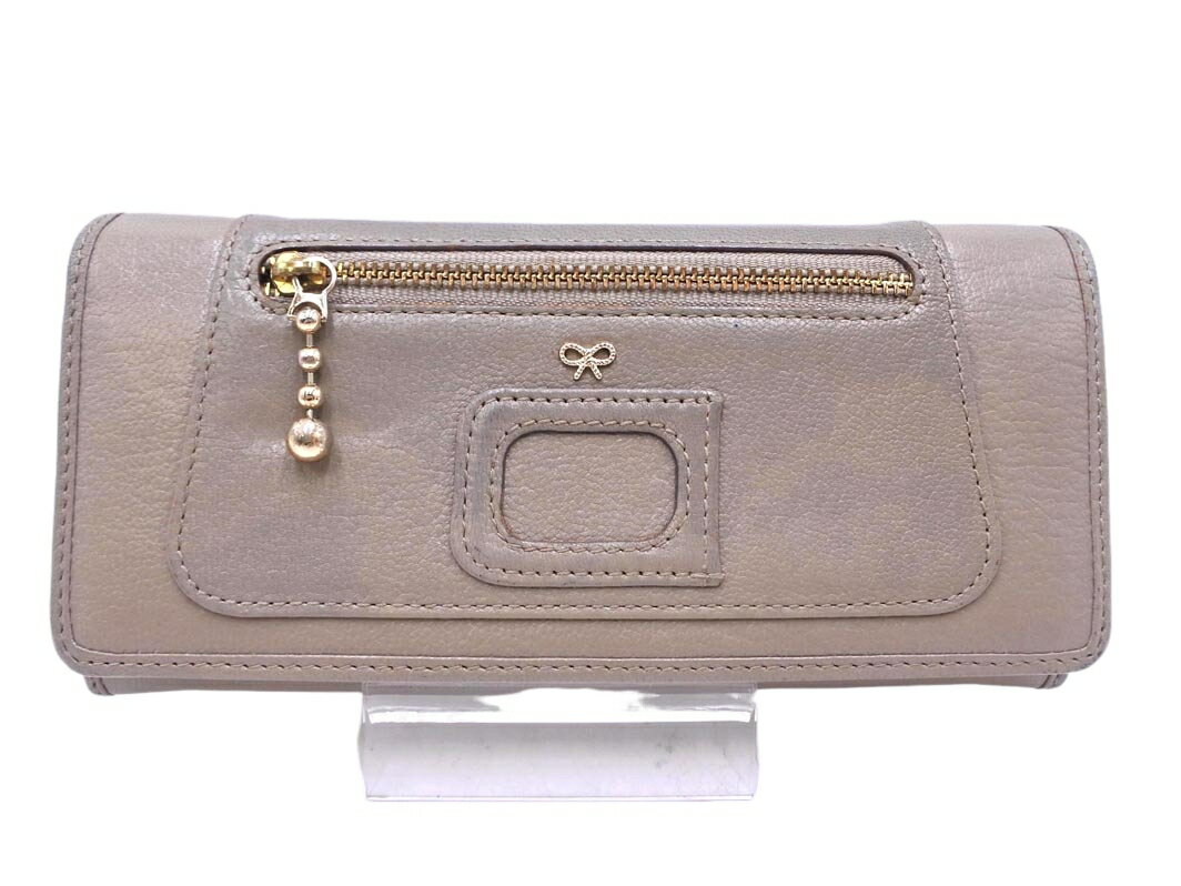 ANYA HINDMARCH アニヤハインドマーチ paxton wallet カプラレザー 長 財布 グレー ■■ ☆ fjb5 レディース【USED】【中古】【古着】【ブランド古着買取・販売ABJ】