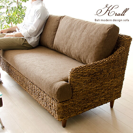 ソファ ソファー 3人掛け 3P カウチソファ アバカ アジアン バリ風家具 カウチソファー 3Pソファ バリモダン モダン シンプル sofa 布地 ファブリックソファ Krall〔クラール〕 3Pソファ ブラウン