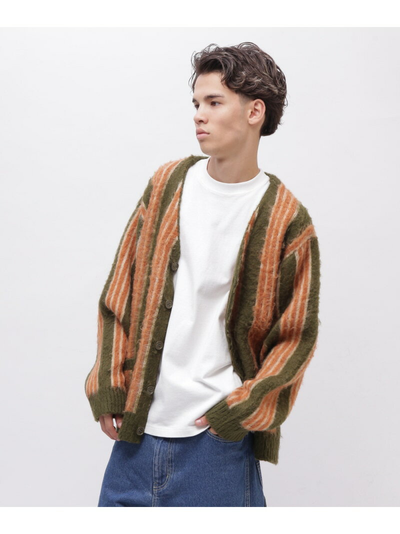 【SALE/30%OFF】AVIREX STRIPE MOHAIR LIKE CARDIGAN / ストライプ モヘア ライク カーディガン / AVIREX / アヴィレックス アヴィレックス トップス ニット グリーン ブラック【送料無料】